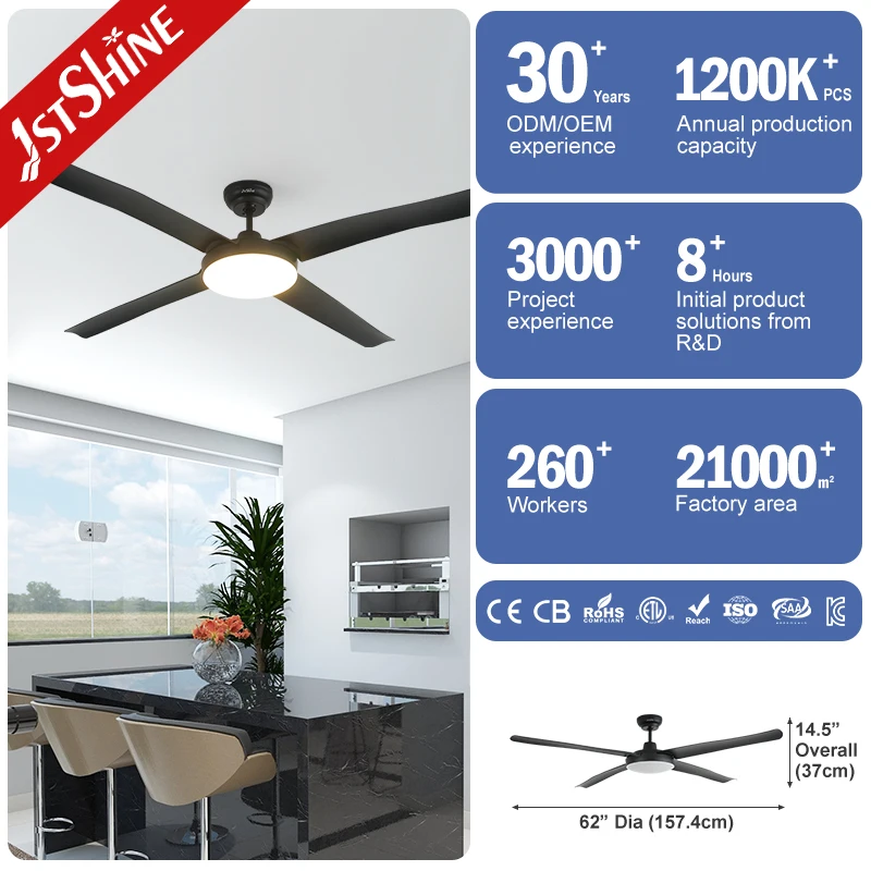 1stshine Ceiling Fan Black ABS Blades Dimmable LED Light High Airflow Big 62 Inches Ceiling Fan With Remote